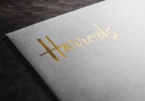 You may have seen metallic gold on print, sometimes on invitations or expensive packaging. This is achieved by using a foil-blocking process in print. The gold foil printing process in a commercial press involves using a specialised printing plate that is made with a raised image or design. This plate is then coated with a heat-sensitive adhesive, which is then heated and pressed onto a sheet of gold leaf. The plate and gold leaf are then run through a printing press, where the plate applies the gold leaf to the desired areas of the printed material.